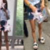 ピッタリデニムで下半身のシルエットが丸わかりw w