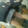 見事なM字状態で丸見えなパンツをよく見ると