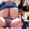 ミニスカ-トに生足だったのですが鞄が邪魔でした、、、しかしスカ-トが短いおかげで下着はしっかり見せてくれました!清楚系の彼女は紫フロントのテカリピンクパンティ!清楚な見た目なのになかなかエロいパンティです